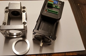 Als Antrieb für die Z-Achse wählte ich einen IHSS-60-36-30-21-38 Schrittmotor. Der hat den Vorteil, dass man keine weiteren Leistungstreiber braucht, sondern einfach nur Spannung sowie die Signale „Step“ und „Richtung“ anschließt. Für den Motor kaufte ich gleich noch einen entsprechenden Halter, der auch die Spindellagerung beinhaltet. Die Orginal Trapezspindel mit dem Schloßkasten sollte getauscht werden durch eine 20mm Kugelumlaufsspindel, um doch deutlich bessere Genauigkeit für eventuelles CNC-Drehen zu bekommen. Die Spindel selber ist 750mm lang mit einer Doppelmutter, am Ende wird in Spindel in einem BF15 Lagerbock gelagert.