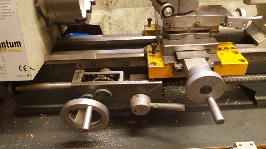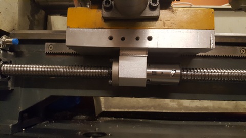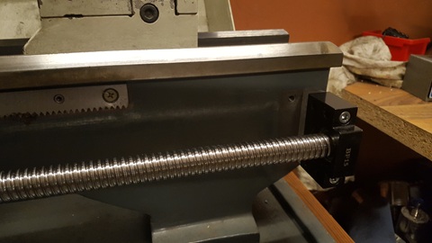 Die rechte Seite der Spindel wird dann mit dem Lagerbock Typ BF15 mit dem Bett der Drehmaschine verschraubt.