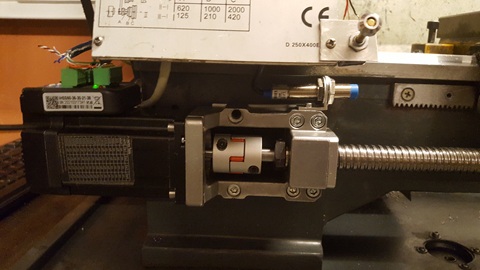 Der fertige Halter erleichtert die Montage des Schrittmotors und der Spindel-Lagerung erheblich. Oben am Halter habe ich zudem einen induktiven Näherungsschalter befestigt, um Referenzfahrten (Homing) ausführen zu können.